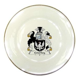 Your Scottish Coat of Arms proudly displayed on an elegant ceramic plate. White ceramic plate with gold trim. Plate stand also included.