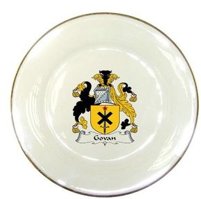 Your Scottish Coat of Arms proudly displayed on an elegant ceramic plate. White ceramic plate with gold trim. Plate stand also included.