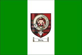 Your scottish clan crest / scottish clan badge proudly displayed on a High Quality Green and White 3 foot by 5 foot Polyester Flag. NOTE: FLAG DOES HAVE TWO GROMMETS