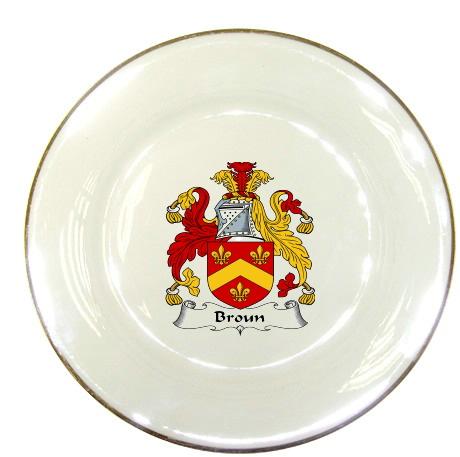 Your Scottish Coat of Arms proudly displayed on an elegant ceramic plate. White ceramic plate with gold trim. Plate stand also included.