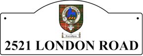 Your scottish clan crest / scottish clan badge & tartan proudly displayed on a High Quality House Sign.