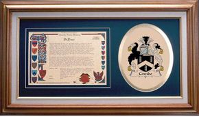 Your Scottish Coat of Arms proudly displayed along with your Family Name History. Gold Framed Print measures 29 inches by 17 inches.
