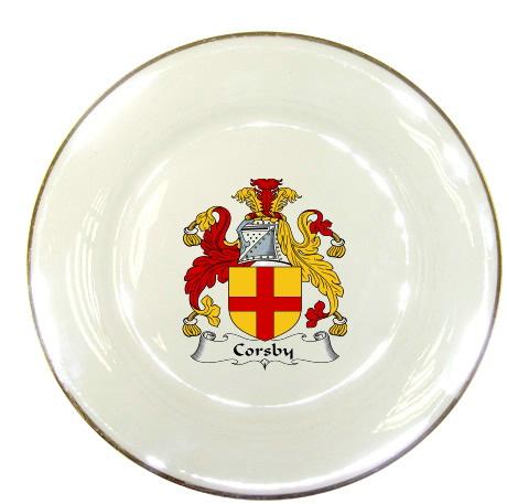 Your Scottish Coat of Arms proudly displayed on an elegant ceramic plate. White ceramic plate with gold trim. Plate stand also included.
