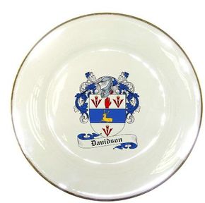 Your Scottish Coat of Arms proudly displayed on an elegant ceramic plate. White ceramic plate with gold trim. Plate stand also included.