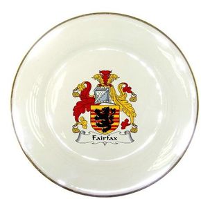 Your Scottish Coat of Arms proudly displayed on an elegant ceramic plate. White ceramic plate with gold trim. Plate stand also included.