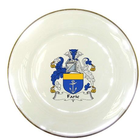 Your Scottish Coat of Arms proudly displayed on an elegant ceramic plate. White ceramic plate with gold trim. Plate stand also included.