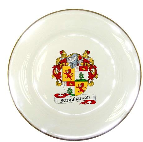 Your Scottish Coat of Arms proudly displayed on an elegant ceramic plate. White ceramic plate with gold trim. Plate stand also included.