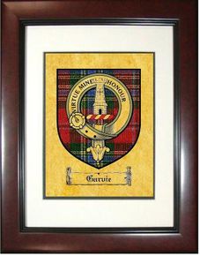 Your scottish clan crest / scottish clan badge & tartan proudly displayed on a High Quality 11 inch x 14 inch Framed Print.
