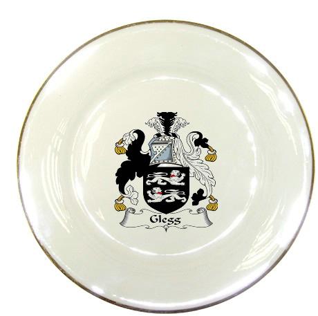 Your Scottish Coat of Arms proudly displayed on an elegant ceramic plate. White ceramic plate with gold trim. Plate stand also included.