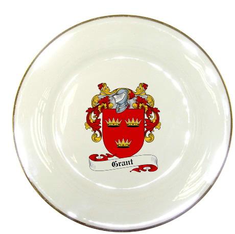 Your Scottish Coat of Arms proudly displayed on an elegant ceramic plate. White ceramic plate with gold trim. Plate stand also included.