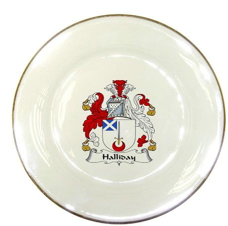 Your Scottish Coat of Arms proudly displayed on an elegant ceramic plate. White ceramic plate with gold trim. Plate stand also included.