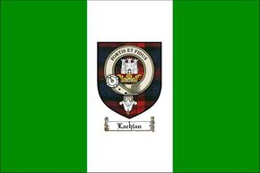 Your scottish clan crest / scottish clan badge proudly displayed on a High Quality Green and White 3 foot by 5 foot Polyester Flag. NOTE: FLAG DOES HAVE TWO GROMMETS
