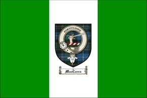 Your scottish clan crest / scottish clan badge proudly displayed on a High Quality Green and White 3 foot by 5 foot Polyester Flag. NOTE: FLAG DOES HAVE TWO GROMMETS