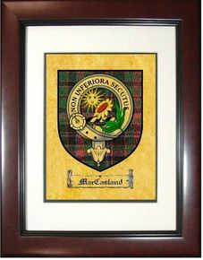 Your scottish clan crest / scottish clan badge & tartan proudly displayed on a High Quality 11 inch x 14 inch Framed Print.