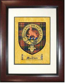 Your scottish clan crest / scottish clan badge & tartan proudly displayed on a High Quality 11 inch x 14 inch Framed Print.
