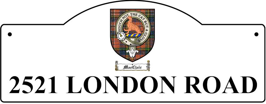 Your scottish clan crest / scottish clan badge & tartan proudly displayed on a High Quality House Sign.