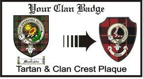 Your scottish clan crest / scottish clan badge & tartan proudly displayed on a High Quality Plaque.