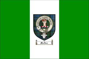 Your scottish clan crest / scottish clan badge proudly displayed on a High Quality Green and White 3 foot by 5 foot Polyester Flag. NOTE: FLAG DOES HAVE TWO GROMMETS