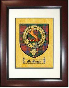 Your scottish clan crest / scottish clan badge & tartan proudly displayed on a High Quality 11 inch x 14 inch Framed Print.