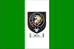 Your scottish clan crest / scottish clan badge proudly displayed on a High Quality Green and White 3 foot by 5 foot Polyester Flag. NOTE: FLAG DOES HAVE TWO GROMMETS