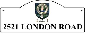 Your scottish clan crest / scottish clan badge & tartan proudly displayed on a High Quality House Sign.