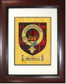 Your scottish clan crest / scottish clan badge & tartan proudly displayed on a High Quality 11 inch x 14 inch Framed Print.