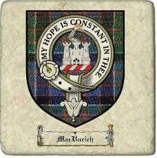 Your scottish clan crest / scottish clan badge & tartan proudly displayed on a High Quality Marble Tile.