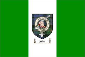 Your scottish clan crest / scottish clan badge proudly displayed on a High Quality Green and White 3 foot by 5 foot Polyester Flag. NOTE: FLAG DOES HAVE TWO GROMMETS