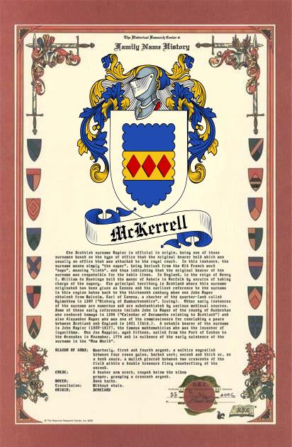 Your Scottish Coat of Arms proudly displayed along with your Family Name History. Print measures a large 17 inches tall by 11 inches wide.