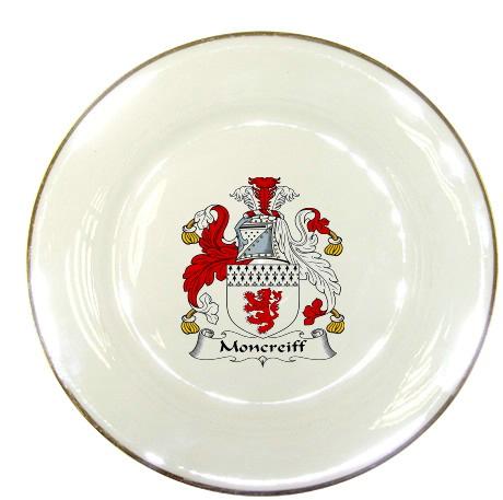 Your Scottish Coat of Arms proudly displayed on an elegant ceramic plate. White ceramic plate with gold trim. Plate stand also included.