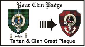 Your scottish clan crest / scottish clan badge & tartan proudly displayed on a High Quality Plaque.