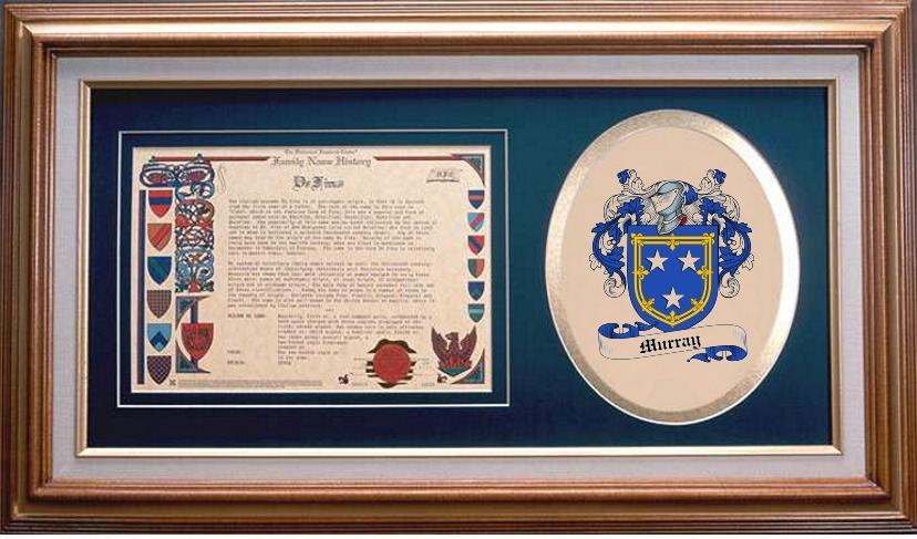 Your Scottish Coat of Arms proudly displayed along with your Family Name History. Gold Framed Print measures 29 inches by 17 inches.