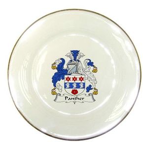 Your Scottish Coat of Arms proudly displayed on an elegant ceramic plate. White ceramic plate with gold trim. Plate stand also included.