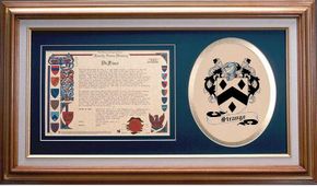 Your Scottish Coat of Arms proudly displayed along with your Family Name History. Gold Framed Print measures 29 inches by 17 inches.
