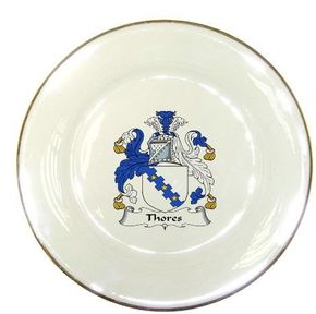 Your Scottish Coat of Arms proudly displayed on an elegant ceramic plate. White ceramic plate with gold trim. Plate stand also included.