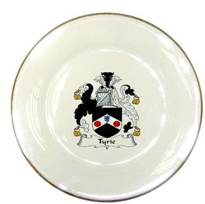 Your Scottish Coat of Arms proudly displayed on an elegant ceramic plate. White ceramic plate with gold trim. Plate stand also included.
