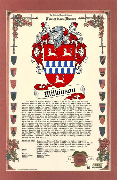 Wilkinson Surname History & Family Crest
